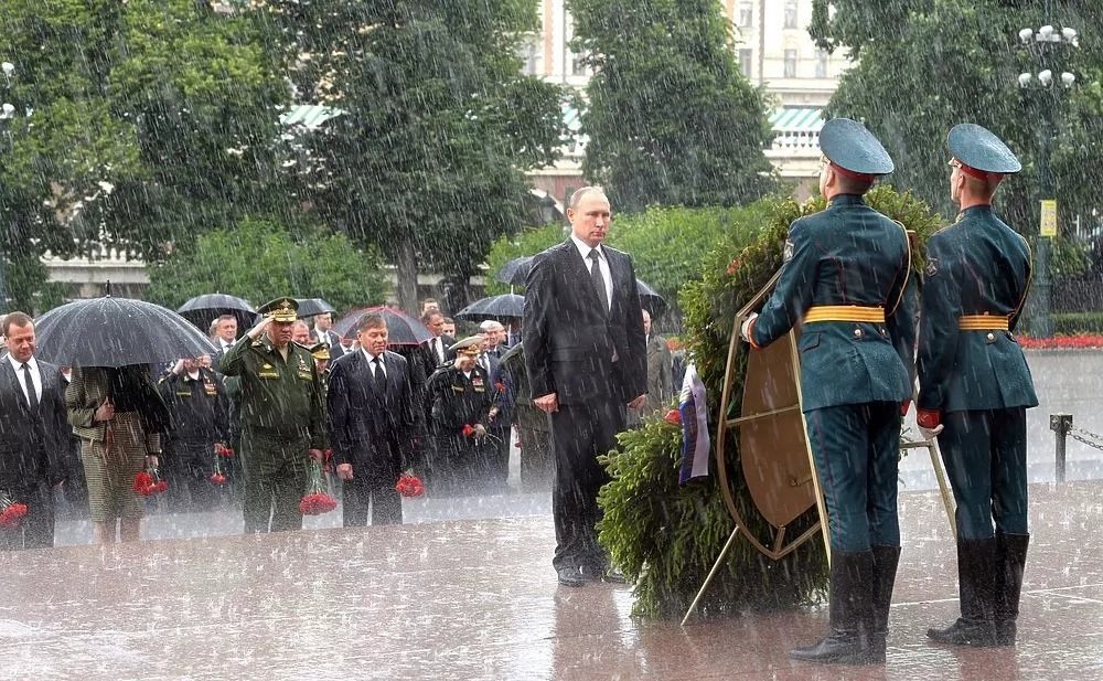 Был такой случай у могилы Неизвестного солдата, был. Сосредоточенный Путин стоически мокнет под дождём.